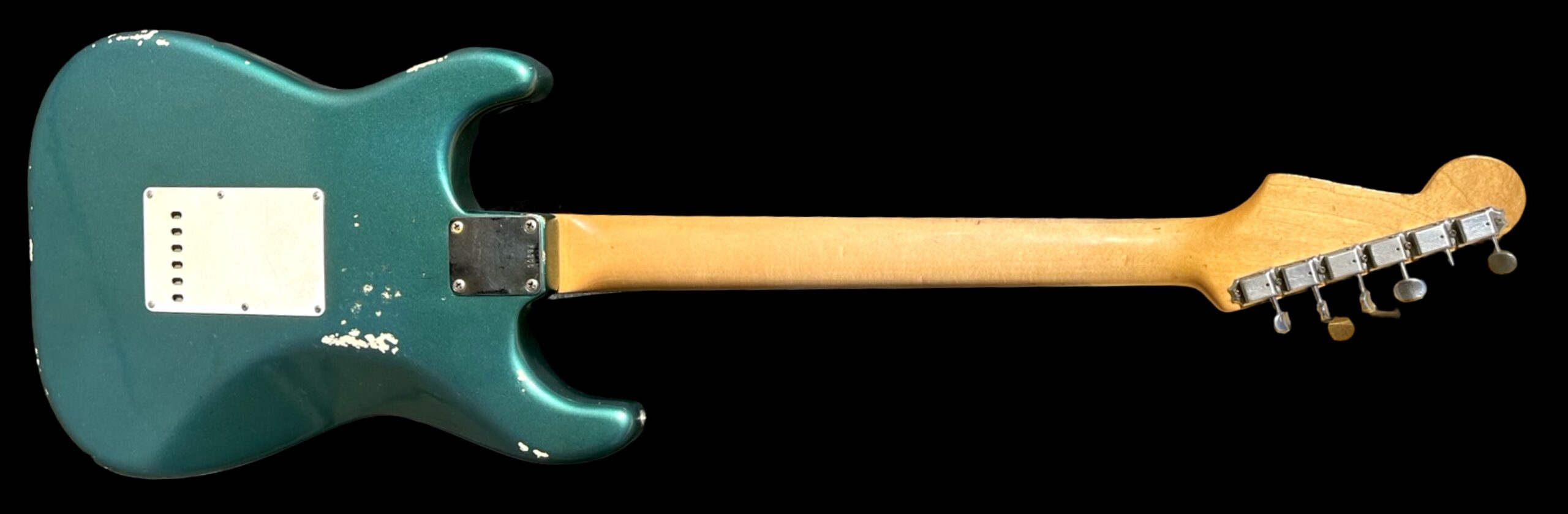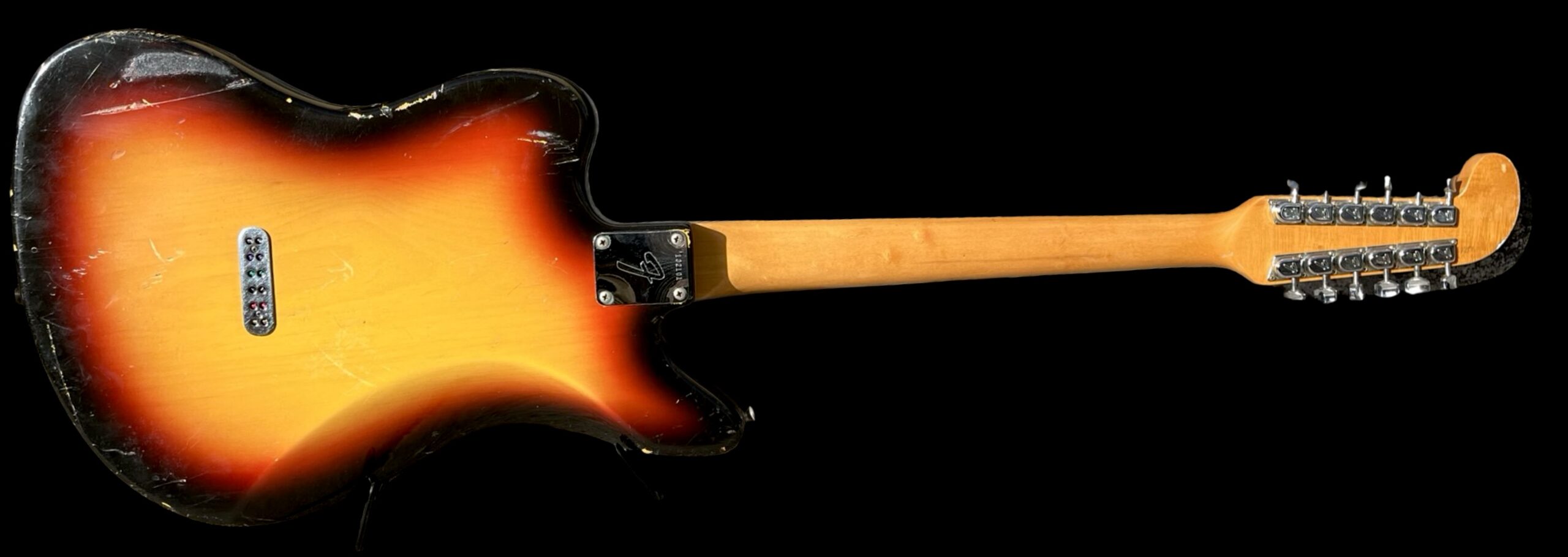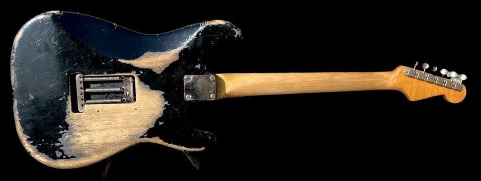 Daphne blue refin / Original feb 1965 neck / Original pickups dated 5-24-65, one rewound / Original tuners, pickguard, pots and switch / Weigh 3,4 kg / Replaced briddge saddles and has had an extra string tree / Comes with original case